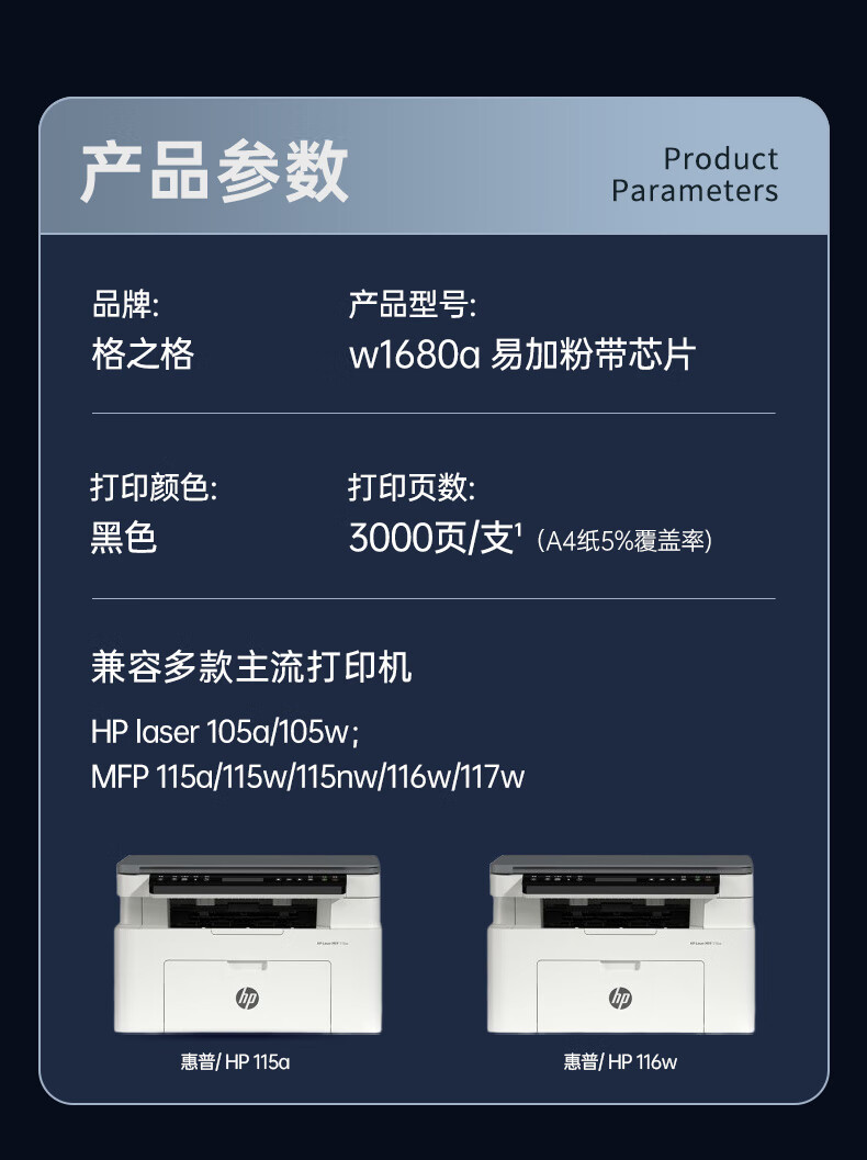 “G&G/格之格”NT-CH1680XC 激光碳粉盒 單個(gè)裝(W1680A硒鼓適用惠普105a 105w墨粉盒MFP 115a 115w 115nw 116w 117w打印機(jī)碳粉盒168a墨盒大容量易加粉)