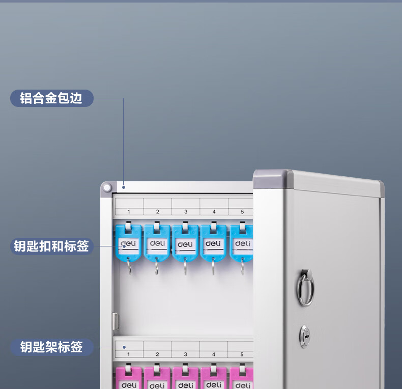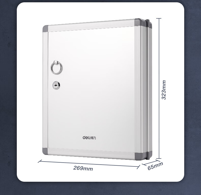 “deli/得力”LZ132 鑰匙管理箱 單個裝(銀色32位鋁合金帶鎖鑰匙整理收納柜鑰匙盒應急鑰匙柜壁掛含鑰匙牌)
