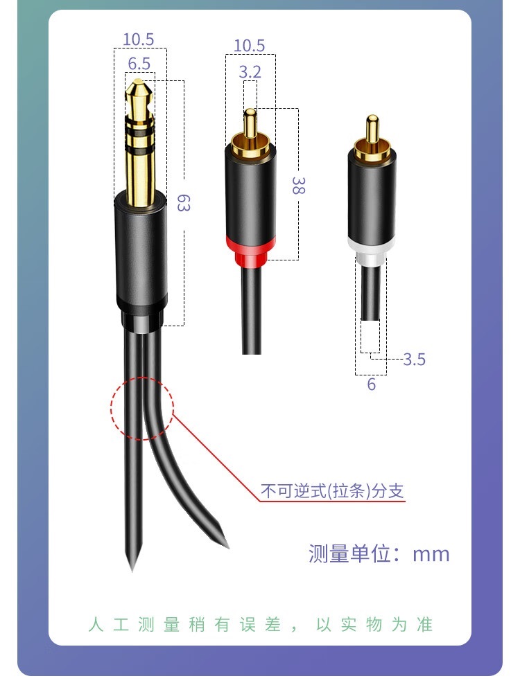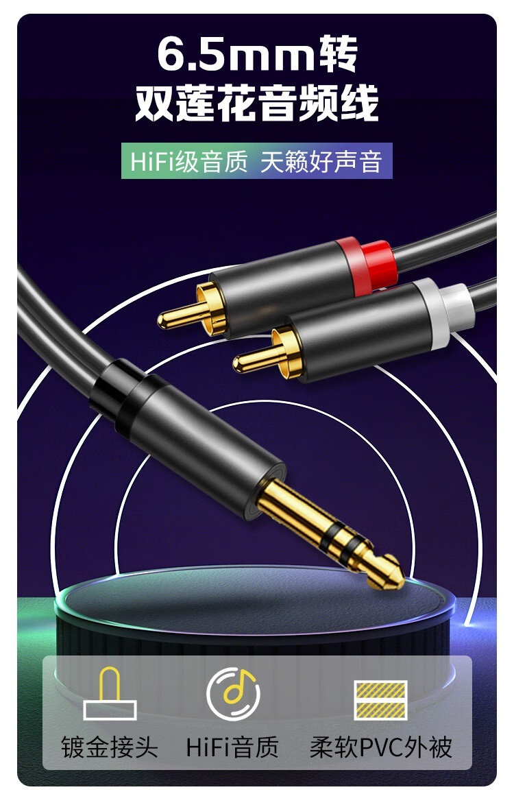 “Haile/海樂”HT-6L2-1.5M 6.5轉(zhuǎn)雙蓮花音頻線 1條裝(6.35mm公轉(zhuǎn)2RCA紅白公頭功放調(diào)音臺(tái)轉(zhuǎn)音響插頭轉(zhuǎn)換線1.5米)