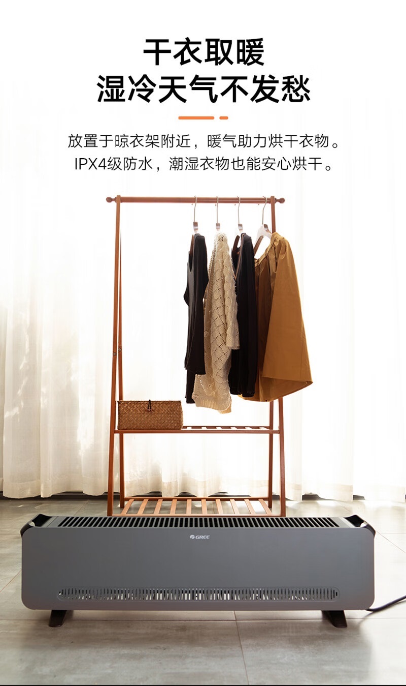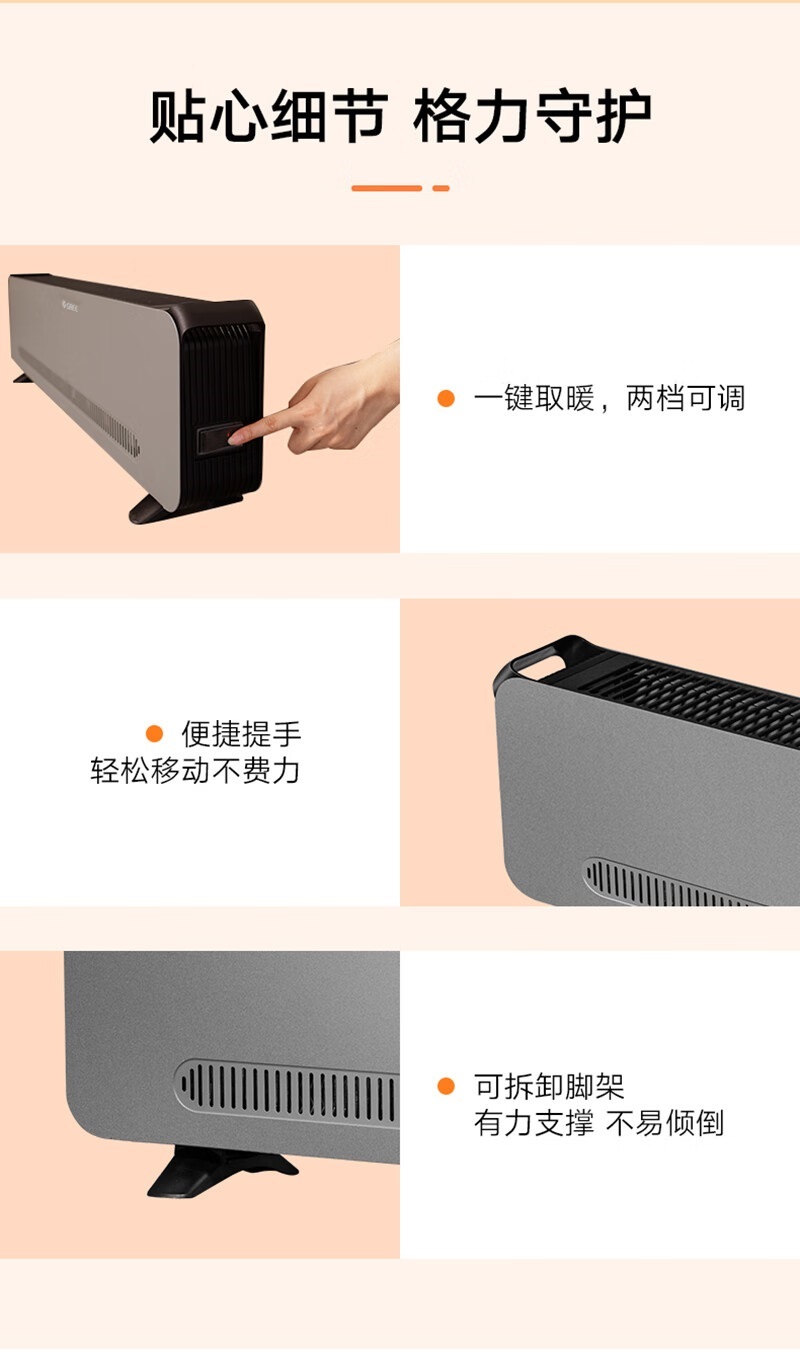 “GREE/格力”手動(dòng)款 踢腳線取暖器 1臺(tái)裝(黑+灰)