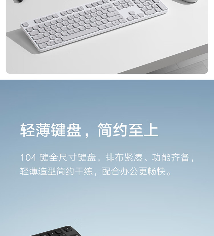 “MI(XIAOMI)/小米”WXJS03YM 無線鍵鼠套裝3 1套裝(深空黑輕薄便攜全尺寸104鍵盤鼠標2.4G無線傳輸電腦筆記本辦公鍵鼠套裝)