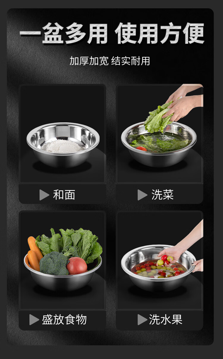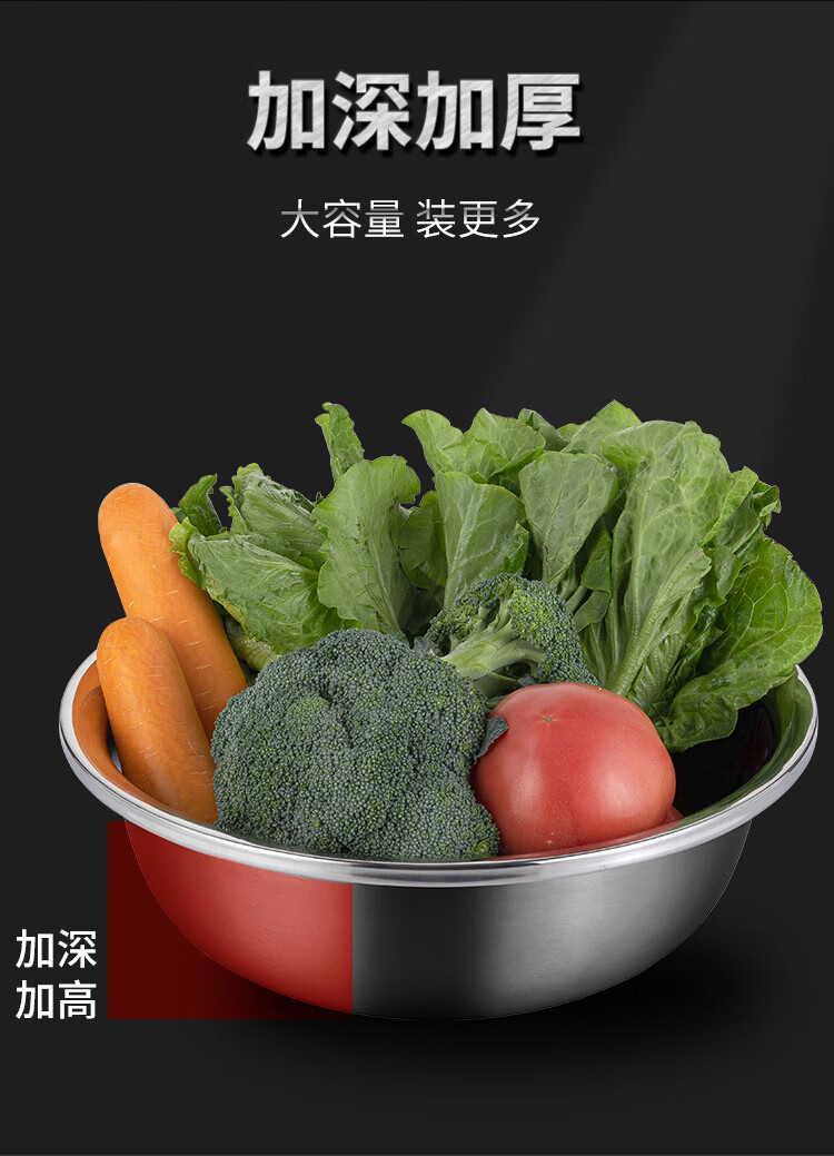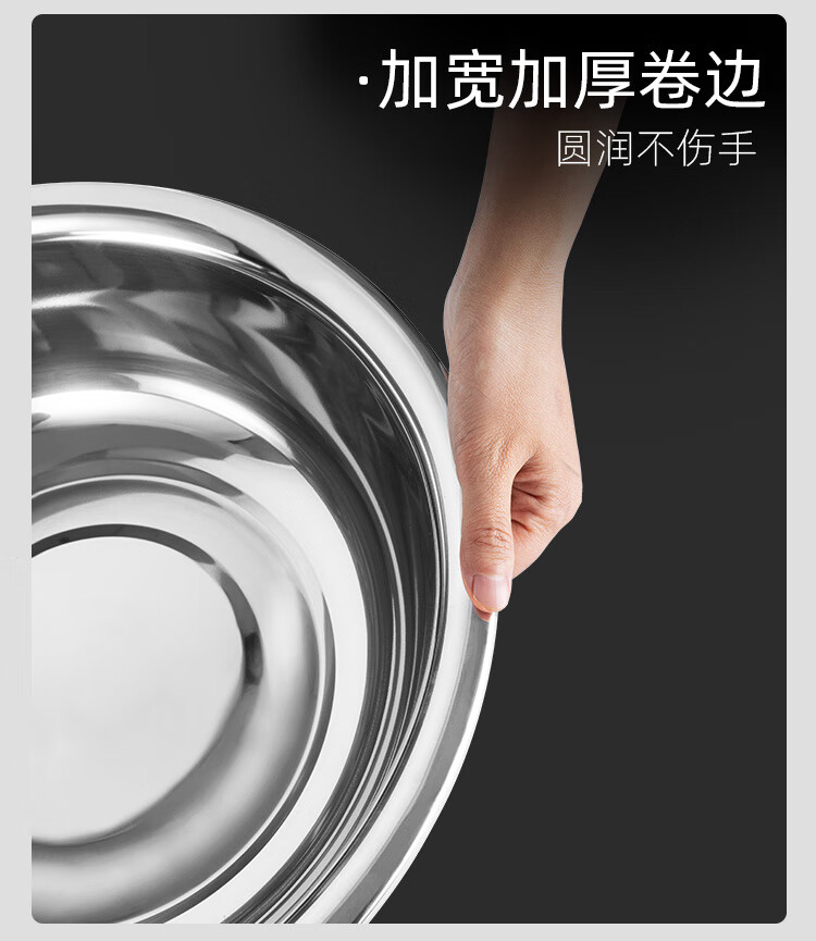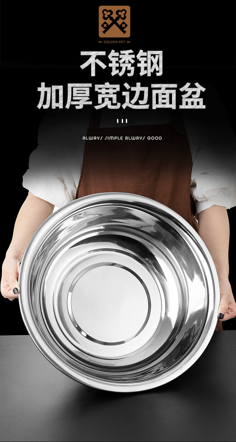 “GOLDEN KEY/金鑰匙”GK-LB340 不銹鋼寬邊面盆 單個(gè)裝(34cm加厚臉盆洗菜盆揉面盆多用料理盆)