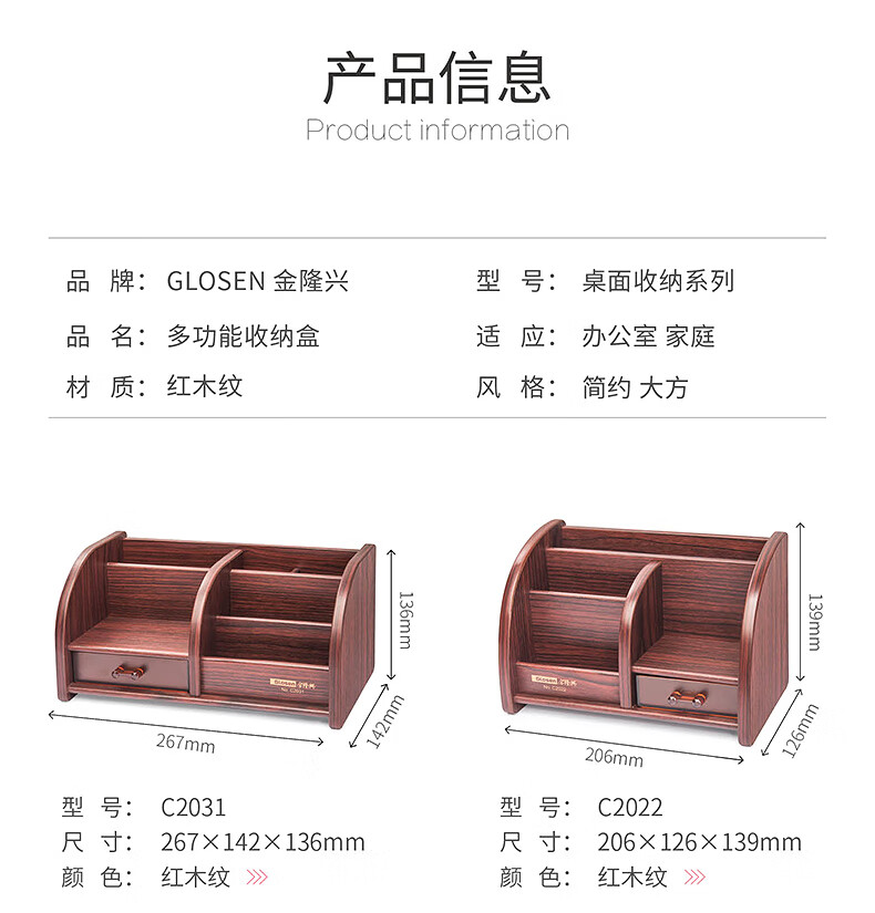 “Glosen/金隆興”C2022 多功能木質(zhì)筆筒 單個裝(紅木紋擺件辦公桌面置物大容量辦公文具用品抽屜遙控器收納盒)