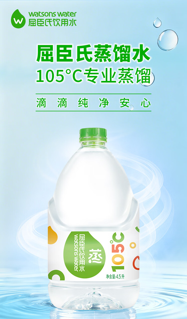 “Watsons/屈臣氏”4.5L*4桶 蒸餾水 單箱裝(蒸餾制法純凈水大桶飲用水家庭裝泡茶煲湯)