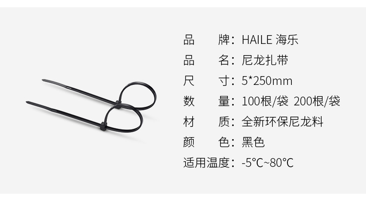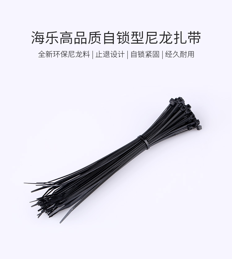 “Haile/海樂”自鎖式 尼龍扎帶 1包裝(黑色捆扎綁扎帶扎線理線束線帶100根)