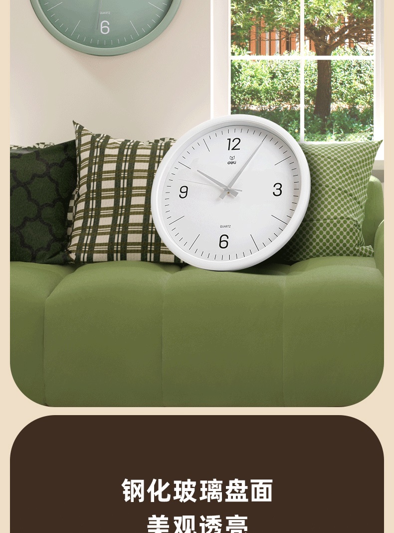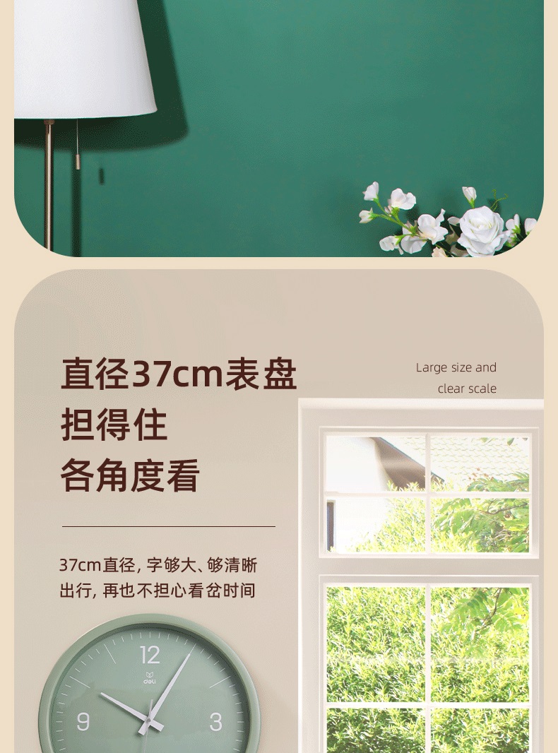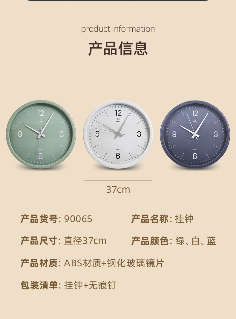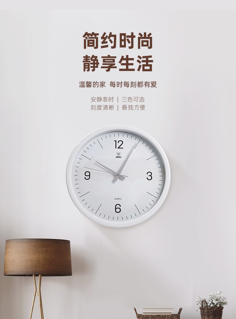 “deli/得力”9006S-WH 掛鐘 1個裝(白色簡約時尚客廳臥室石英鐘圓形37cm)