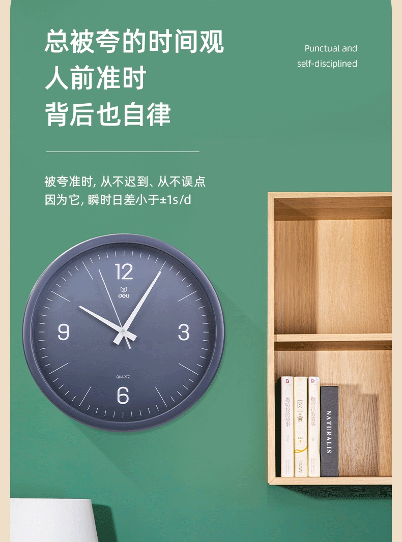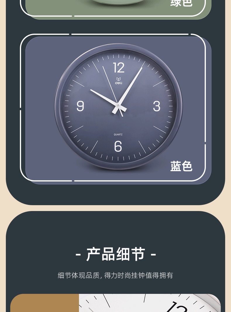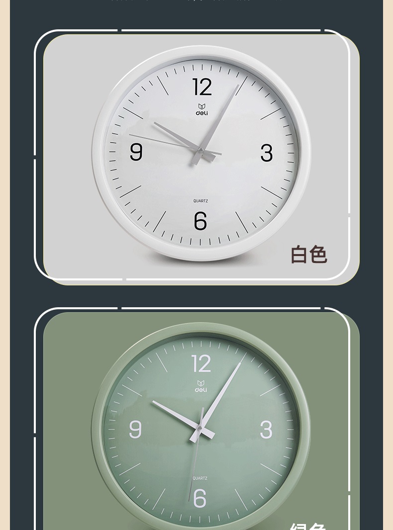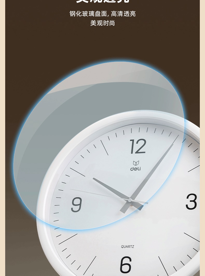 “deli/得力”9006S-WH 掛鐘 1個裝(白色簡約時尚客廳臥室石英鐘圓形37cm)