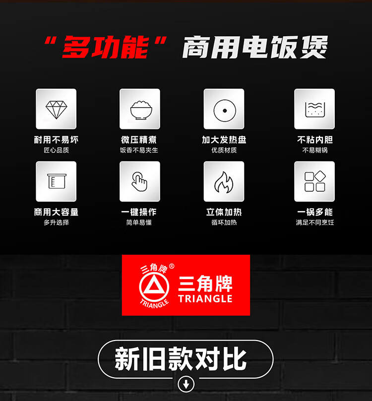 “Triangle/三角(三角牌)”LX100-155B 電飯鍋 1個裝(商用大容量10人以上電飯煲食堂飯店大型電飯煲商用老式煮飯鍋)