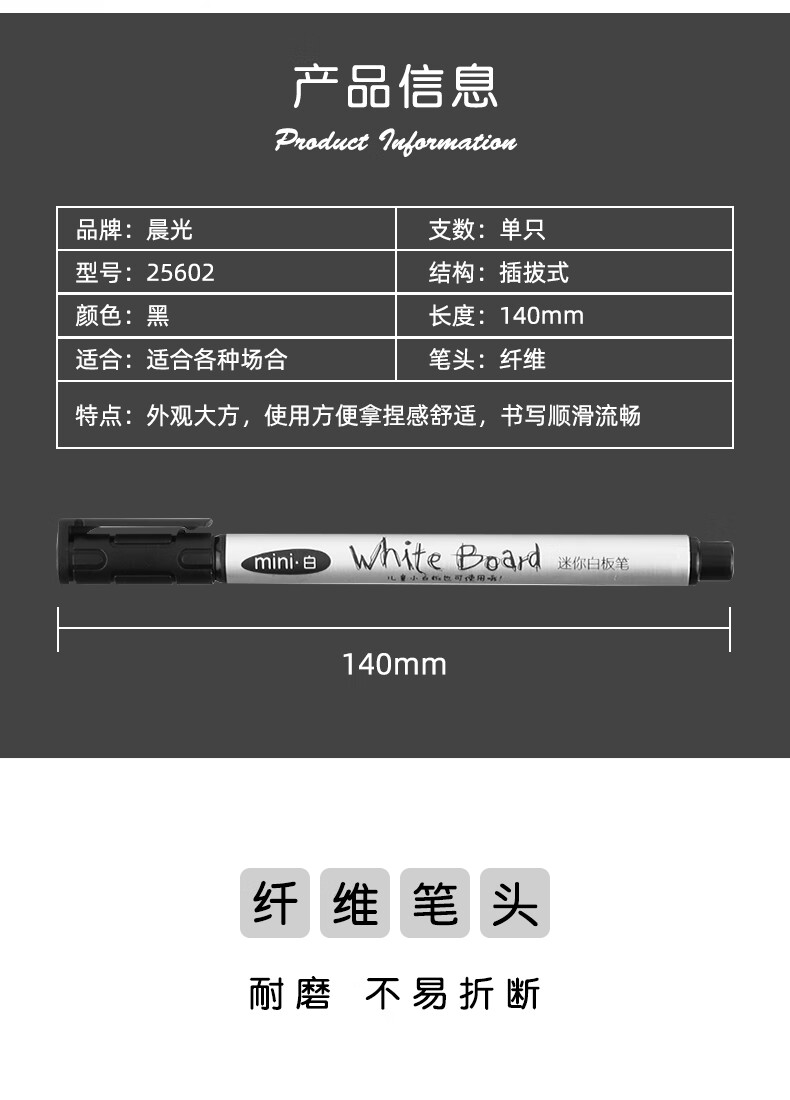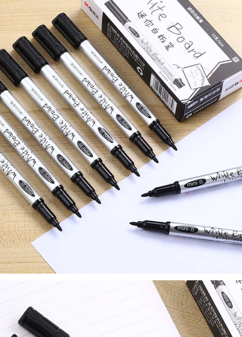 “M&G/晨光”AWM25602A 迷你白板筆 單支裝(黑色可擦順滑快干細(xì)頭單頭記號(hào)筆辦公課堂會(huì)議多場(chǎng)景通用12支/盒)