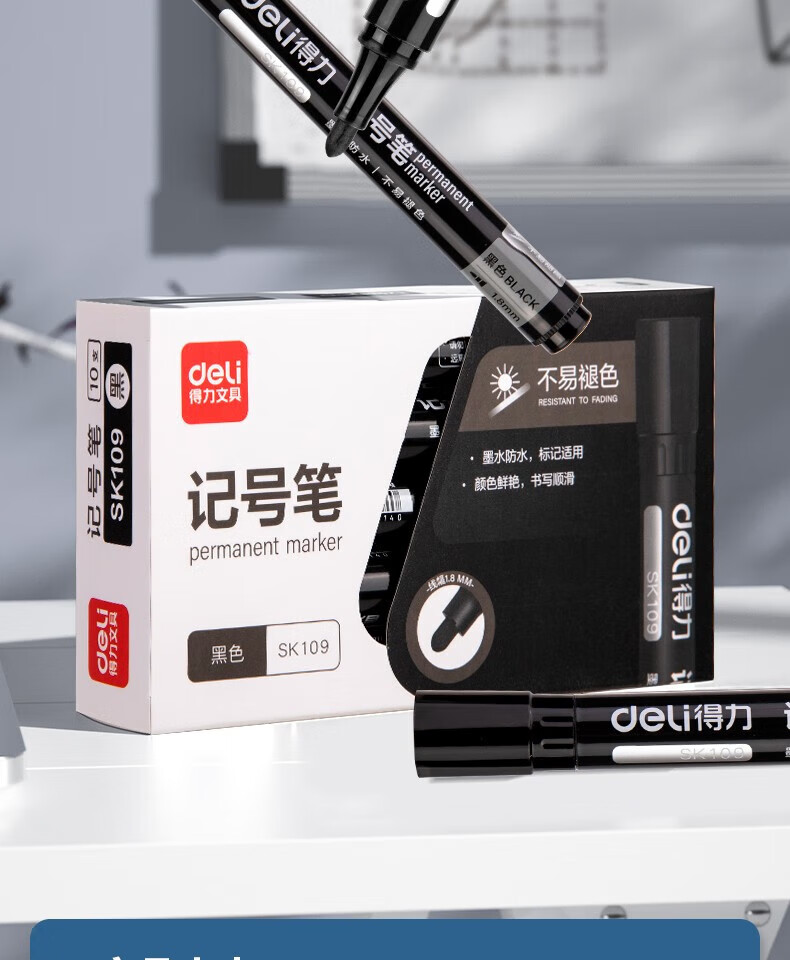 “deli/得力”SK109 記號筆 單支裝(黑色單頭細(xì)桿多用油性筆學(xué)生兒童美術(shù)繪畫勾線筆會議筆學(xué)習(xí)標(biāo)記筆)