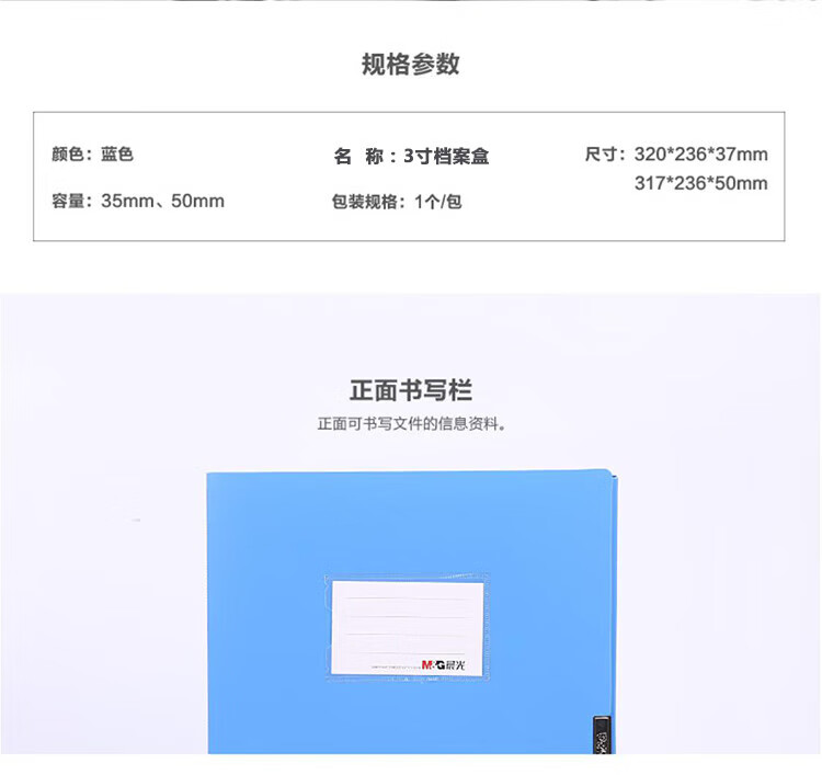“M&G/晨光”ADM94814B1 檔案盒 1個(gè)裝(藍(lán)色A4/55mm粘扣PP文件盒資料盒/財(cái)務(wù)憑證收納盒)