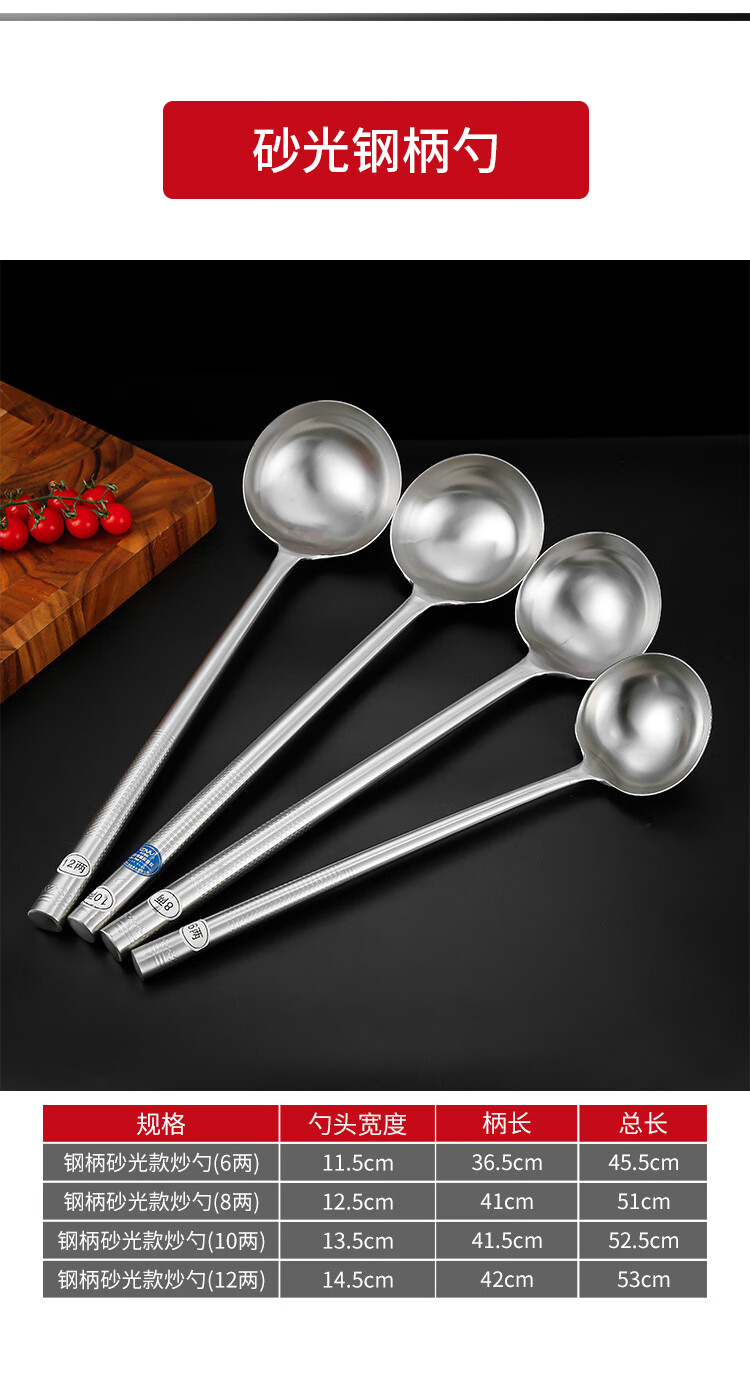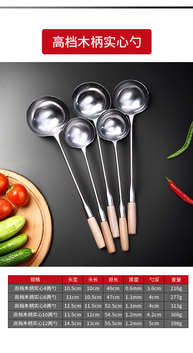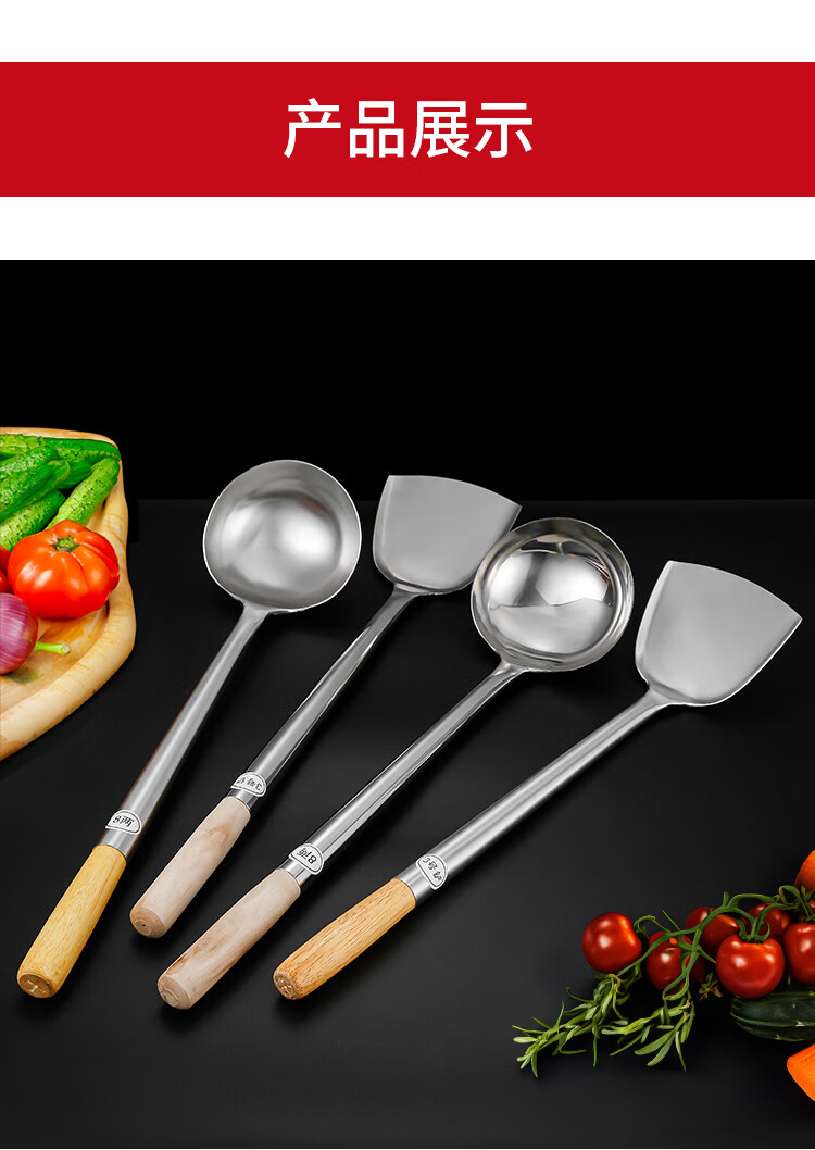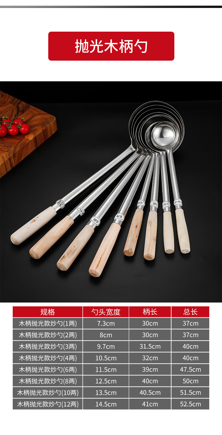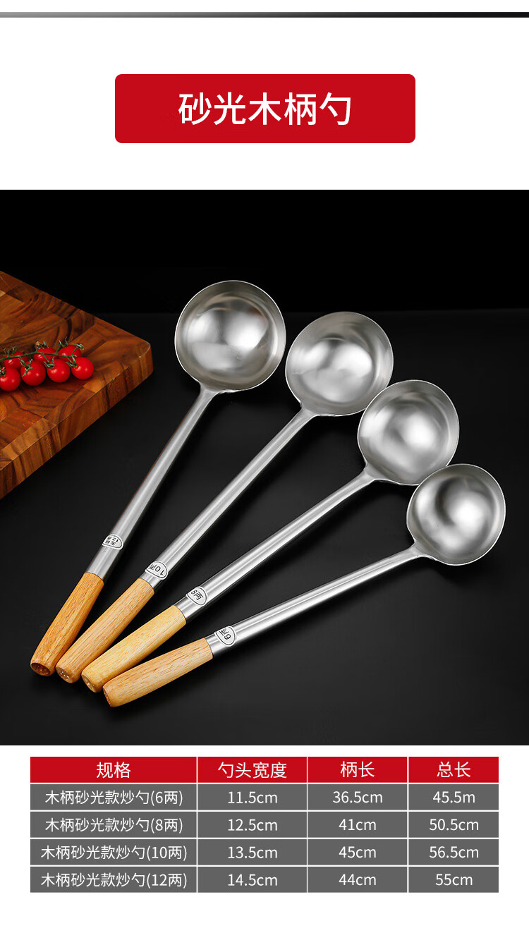 “VAKADA”4兩46cm 打菜勺 單把裝(不銹鋼打勺炒菜勺長(zhǎng)柄加厚食堂廚師手勺木柄)