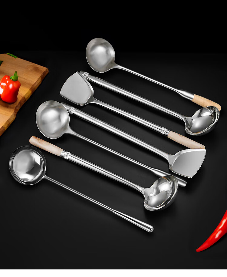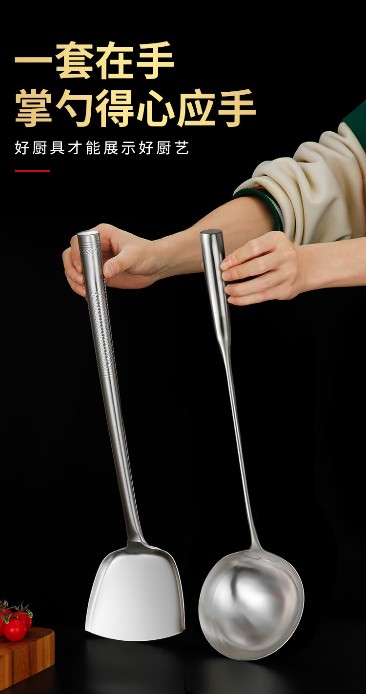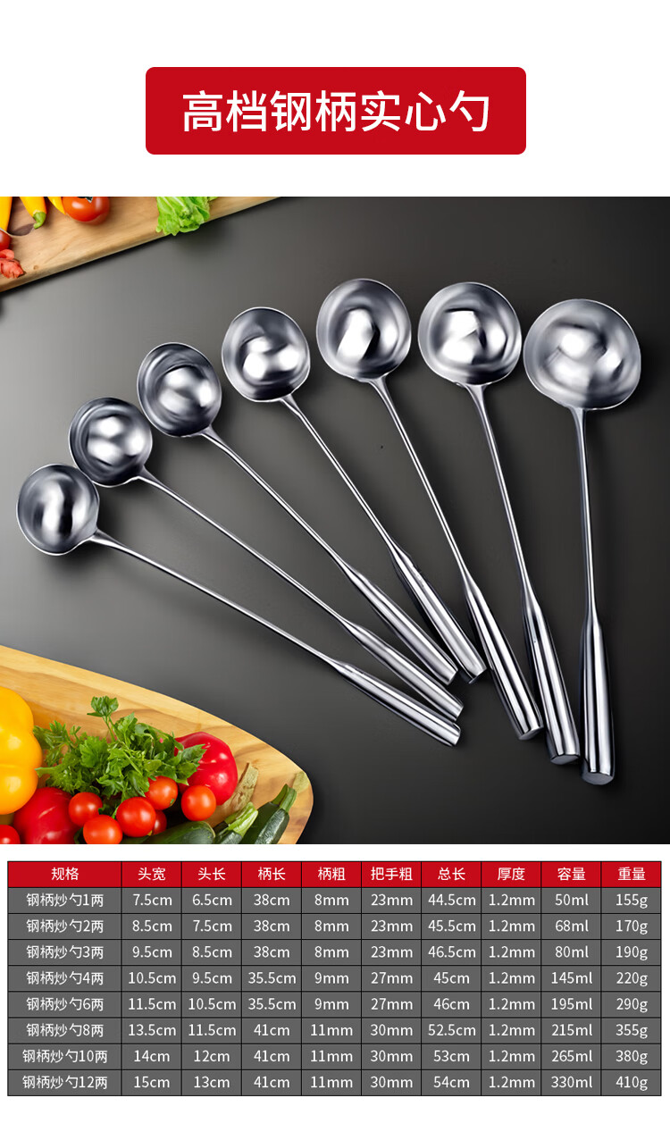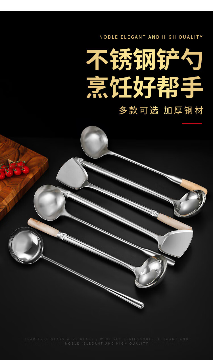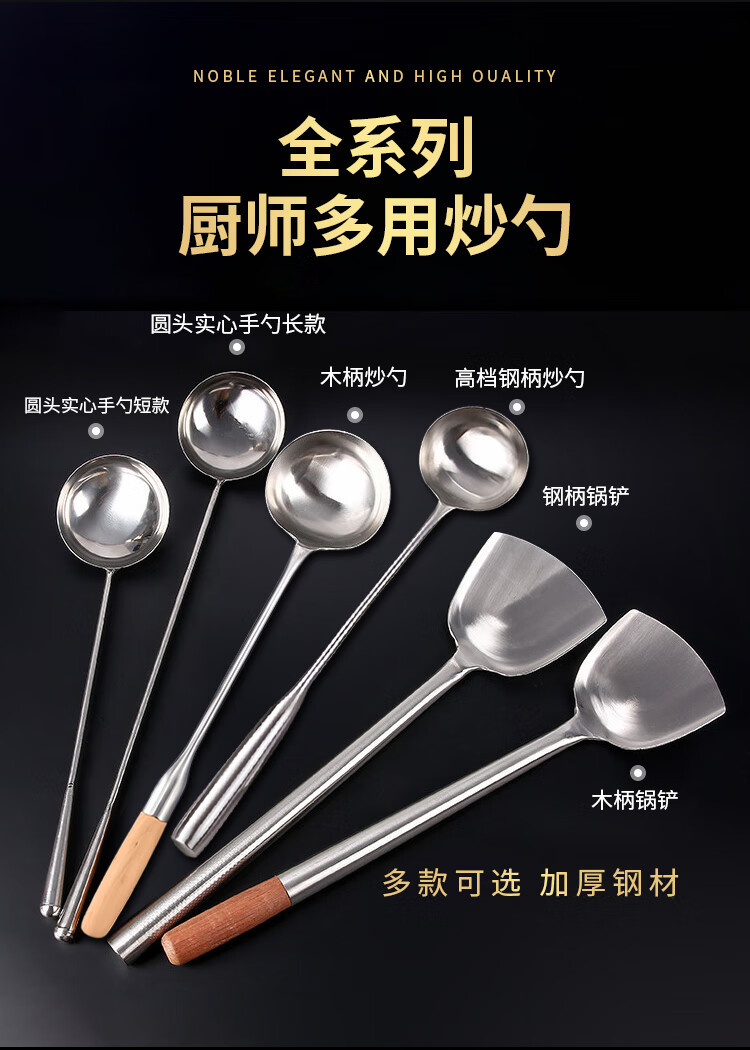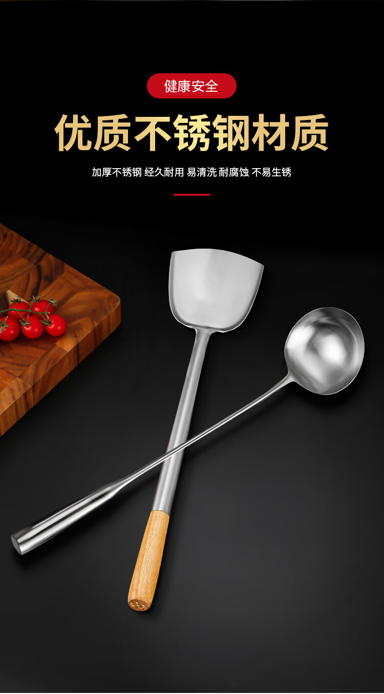 “VAKADA”4兩46cm 打菜勺 單把裝(不銹鋼打勺炒菜勺長(zhǎng)柄加厚食堂廚師手勺木柄)