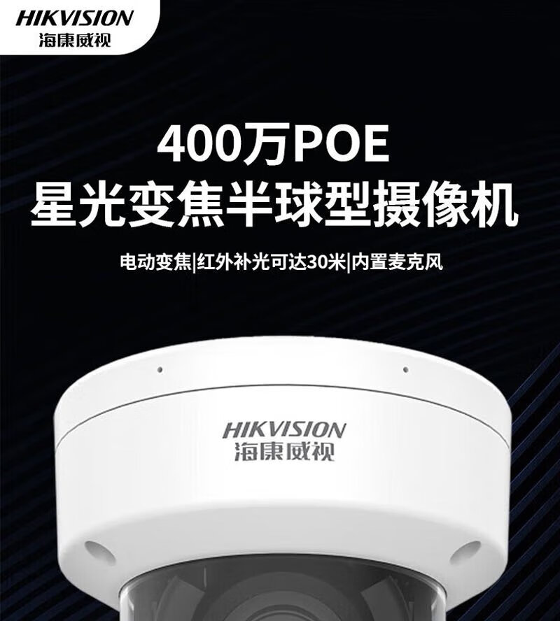 “HIKVISION/??低暋盌S-2CD3746WDV3-IZ(2.7-8MM) 網(wǎng)絡(luò)攝像機(jī) 1個(gè)裝(400萬(wàn)星光變焦半球型PoE)