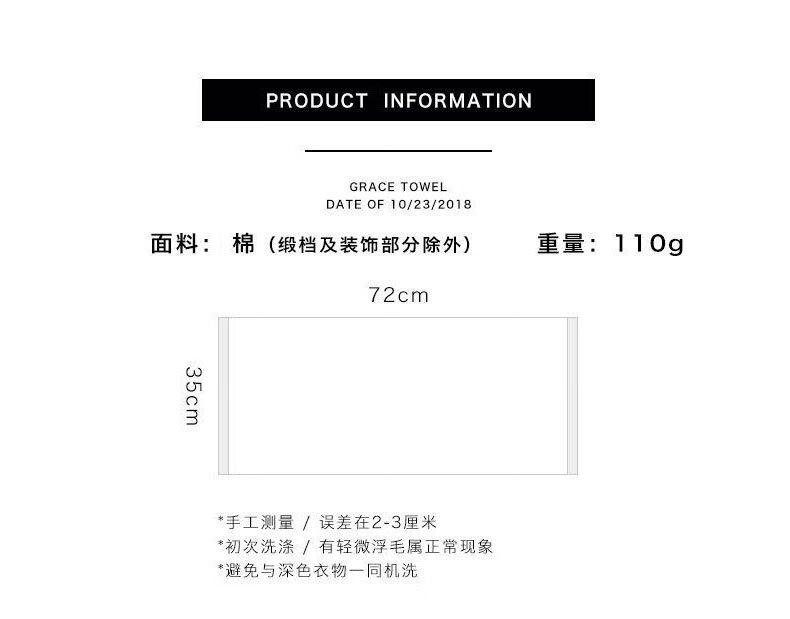 “Grace/潔麗雅”7264 毛巾 1條裝(藍色純棉素色全棉家用男女加厚洗臉巾吸水純色面巾72*35cm/110g)
