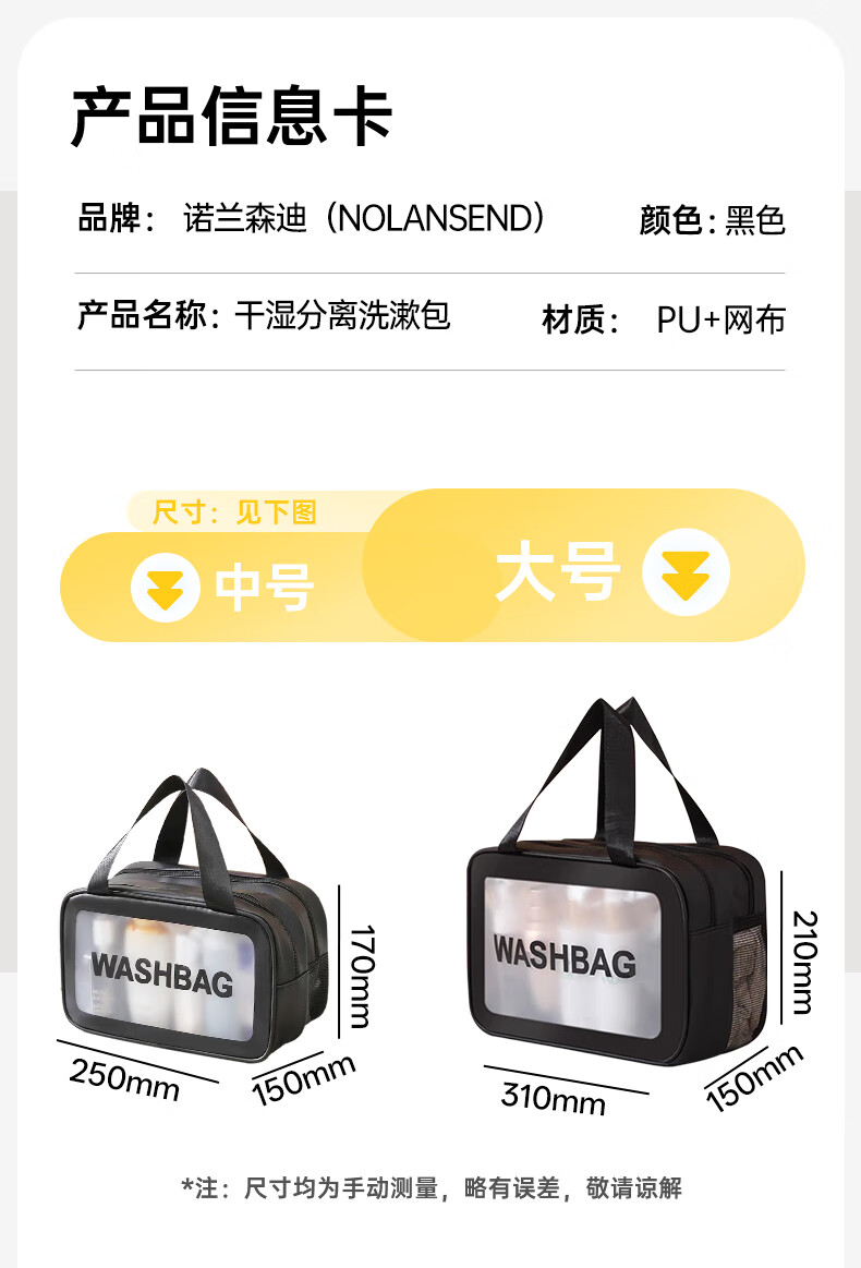 “NOLANSEND/諾蘭森迪”N560大號 洗漱包 1個裝(旅行游泳包干濕分離沙灘包化妝包軍訓(xùn)收納包袋)