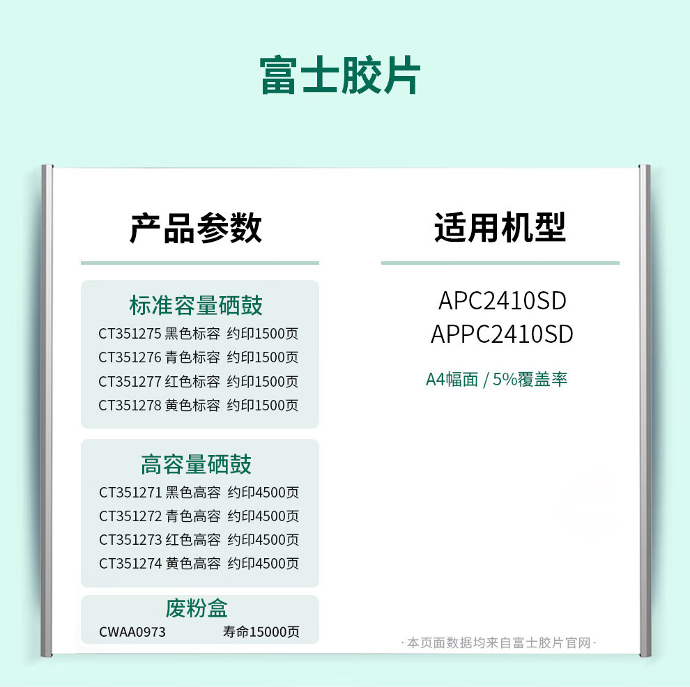 “FUJI FILM/富士膠片”CWAA0973 廢粉盒 1個(gè)裝(原富士施樂(lè)廢粉倉(cāng)適用APC2410SD/APPC2410SD打印機(jī)壽命15000頁(yè))