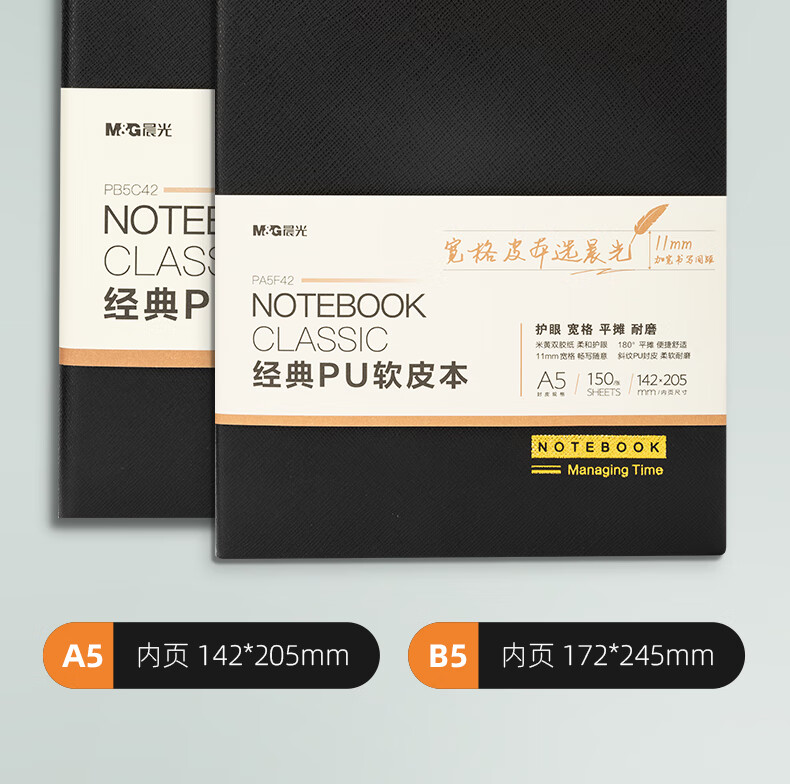 “M&G/晨光”PB5C42 本子 1本裝(黑色文具軟皮革面筆記本開(kāi)會(huì)辦公用品會(huì)議記錄本日記本記事本商務(wù)B5/18K 120張)