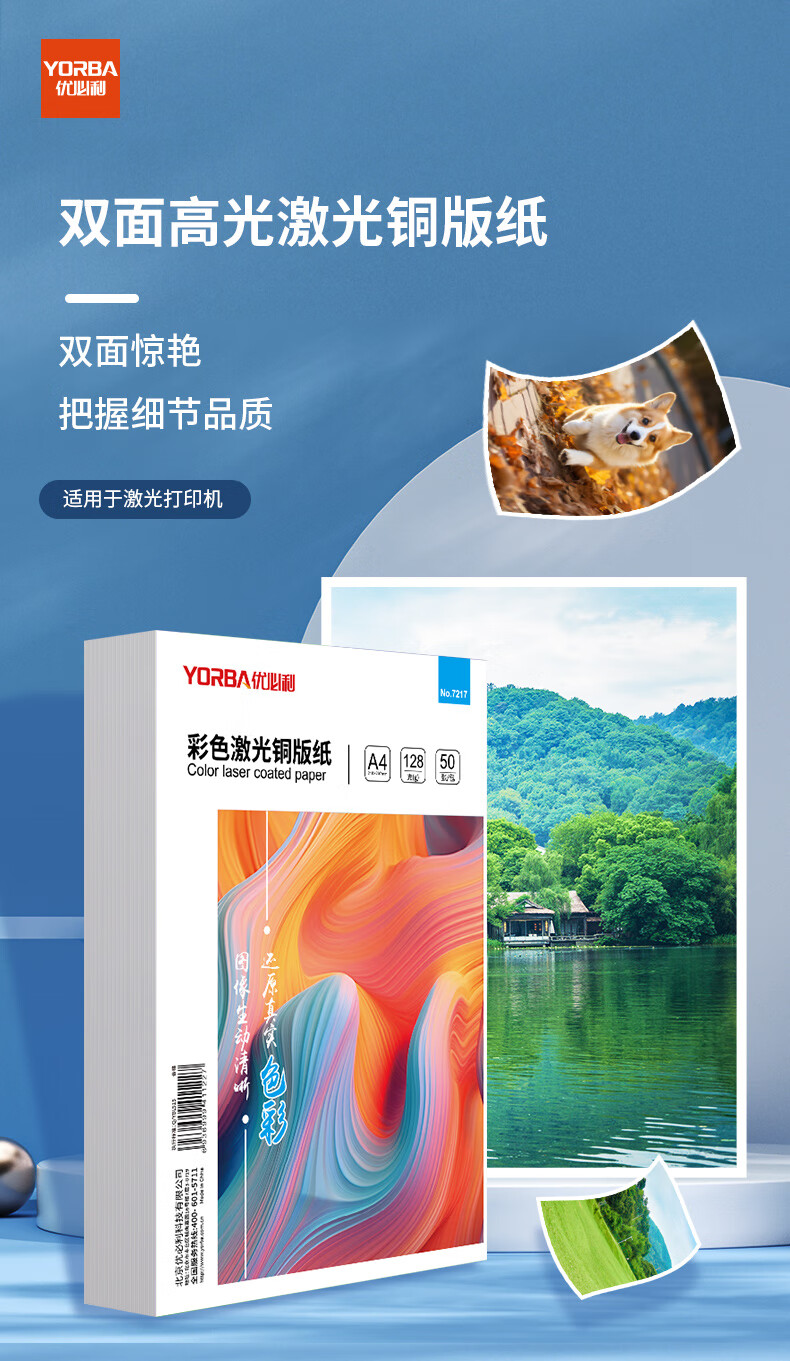 “Ubelieve(YORBA)/優(yōu)必利”A4 彩色激光銅版紙 1包裝(打印紙高光照片相片紙名片紙激光雙面打印紙50張/包)