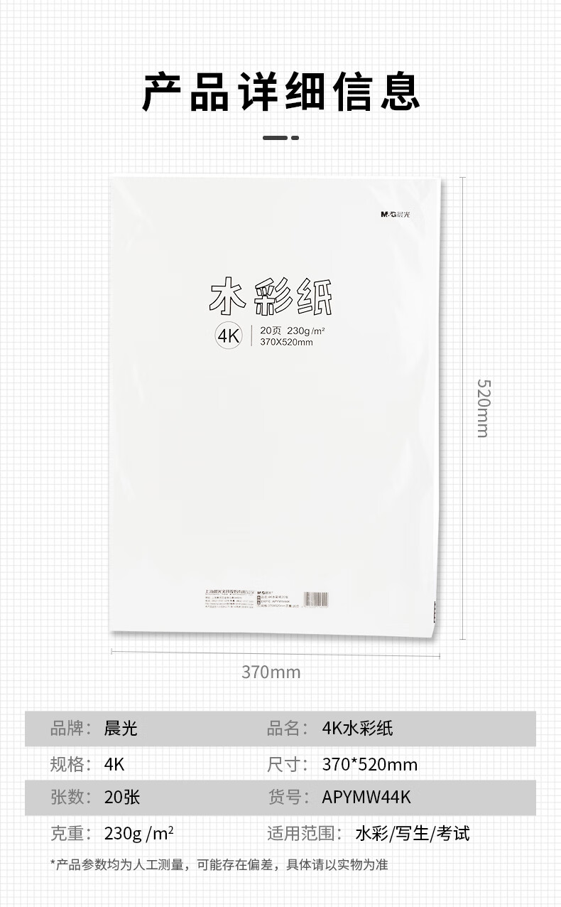 “M&G/晨光”APYMW44K 水彩紙 1包裝(4K/230G 20頁)