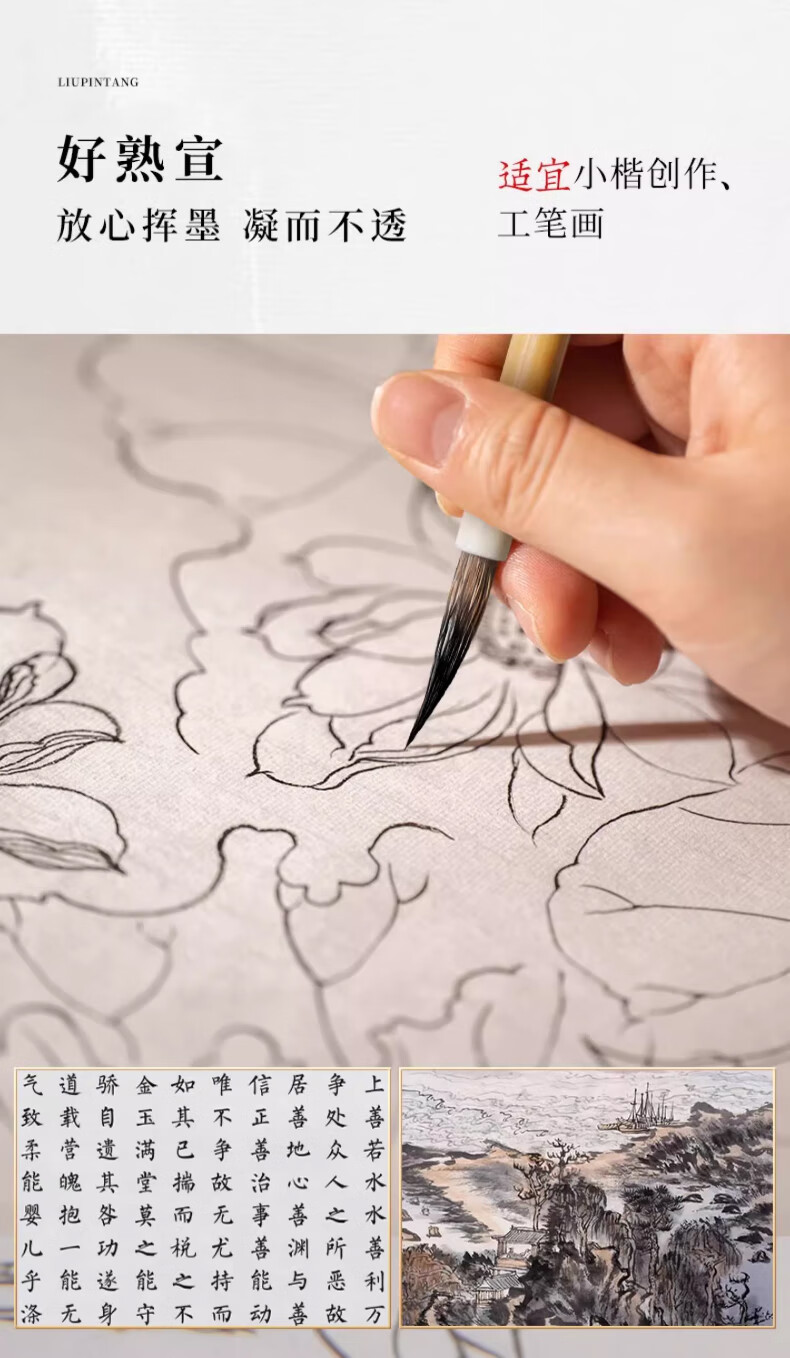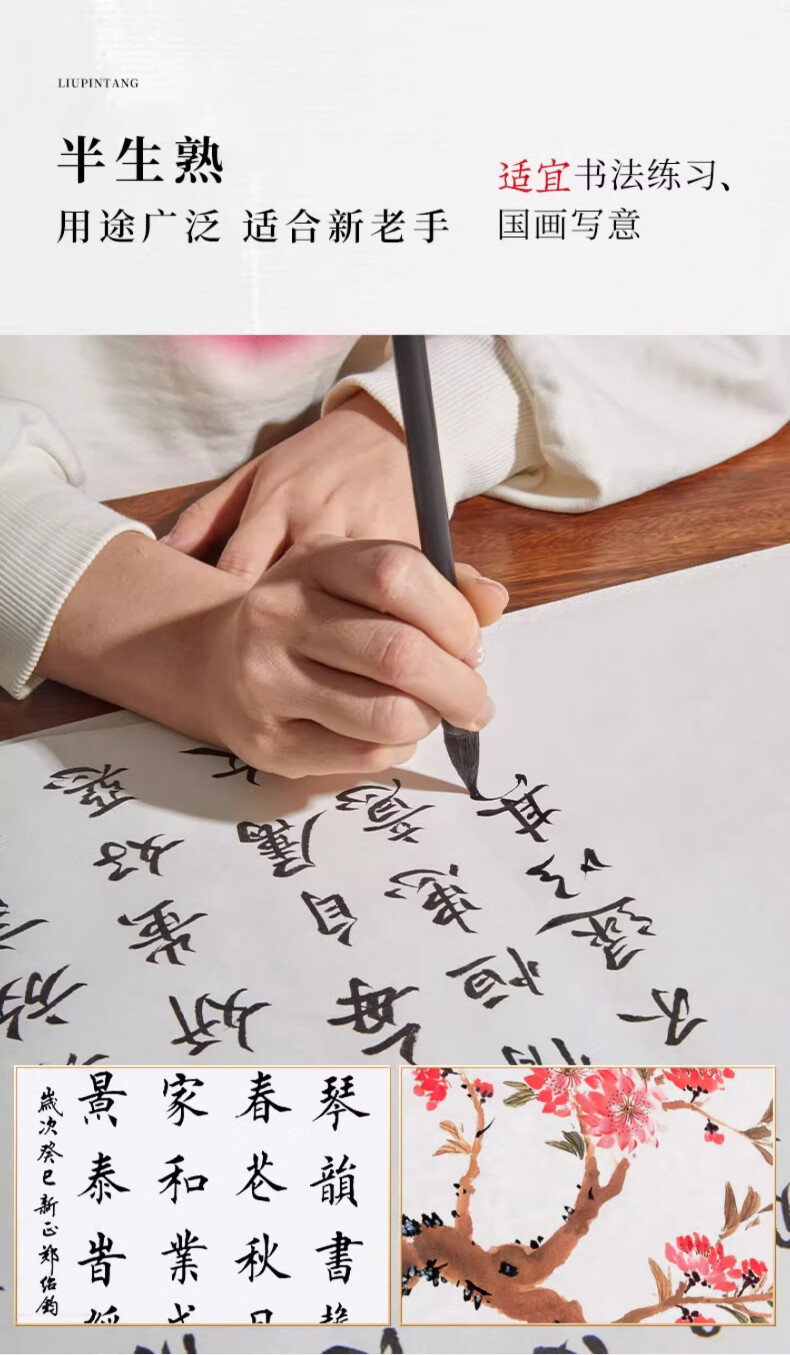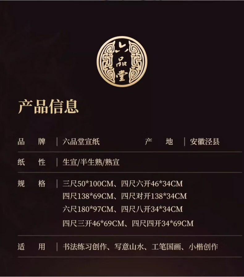 “六品堂”半生熟 四尺對(duì)開 宣紙 單包裝(國(guó)畫書法創(chuàng)作100張/包xz729)
