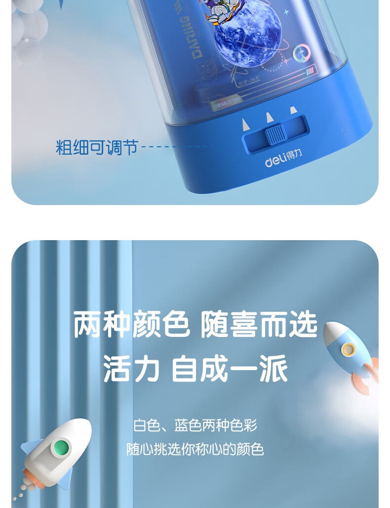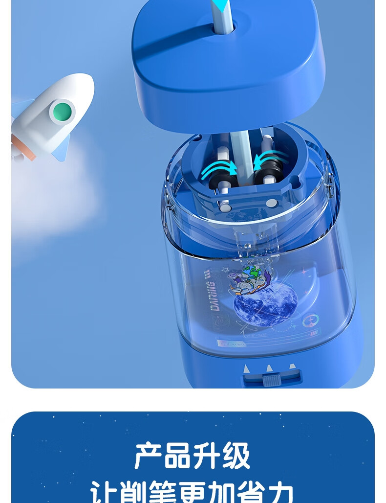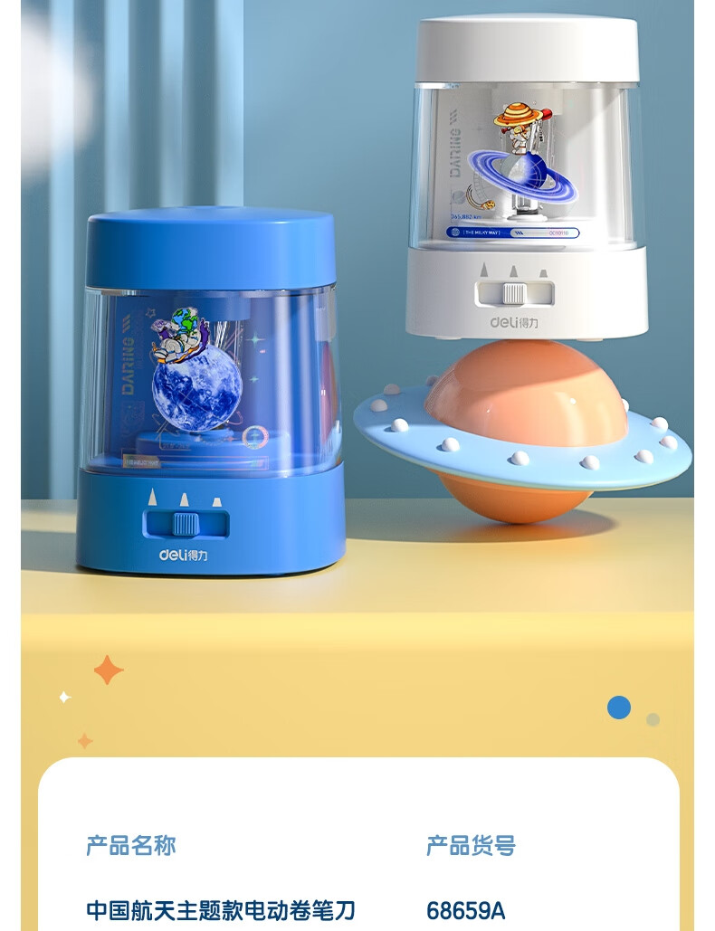 “deli/得力”68659A 電動(dòng)卷筆刀 單個(gè)裝(藍(lán)色刀芯升級(jí)省力耐用多功能削筆機(jī)削筆器)