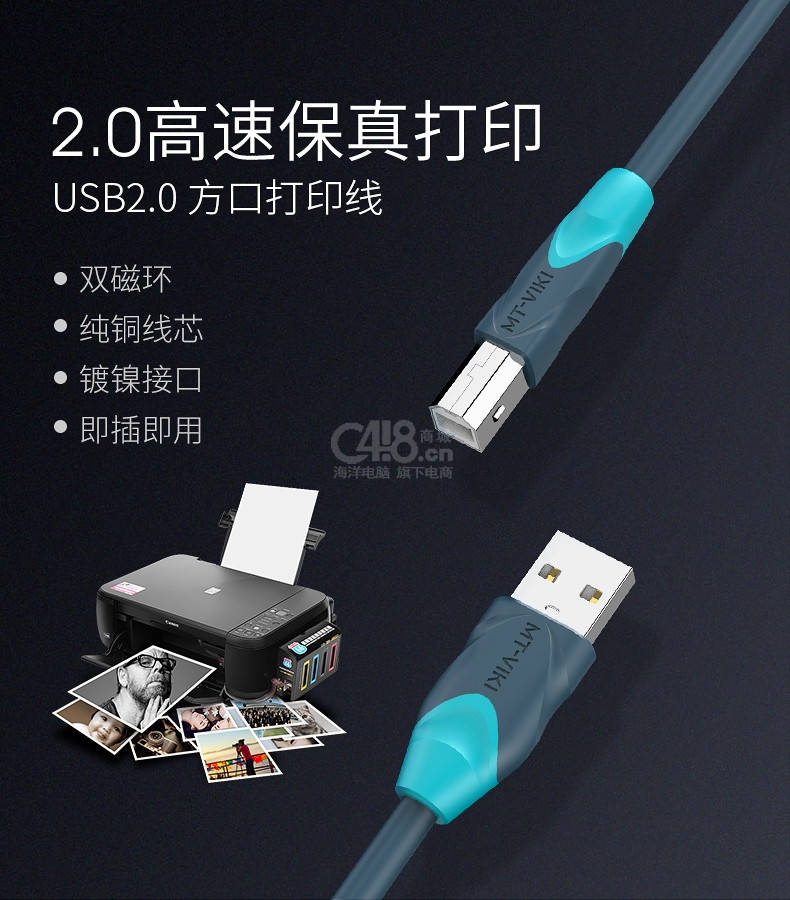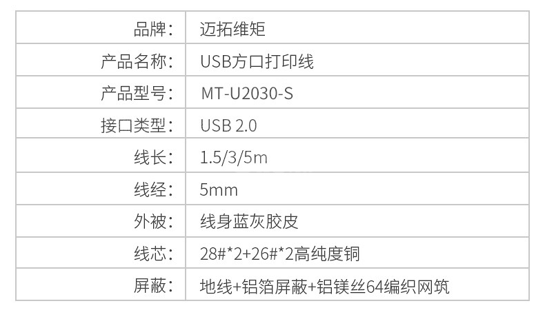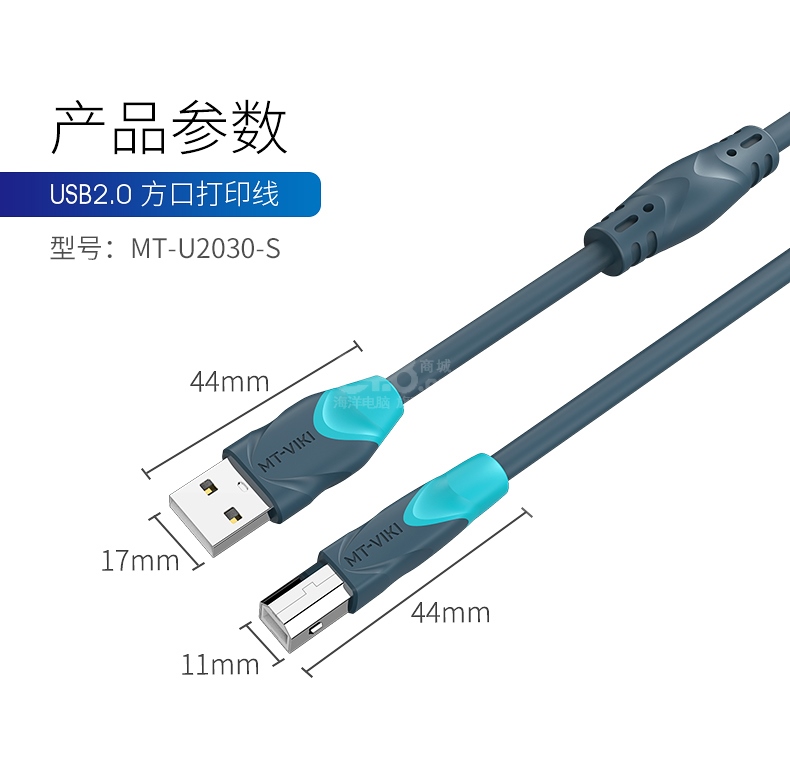“MT-VIKI/邁拓維矩”MT-U2030-S USB2.0方口打印線 1條裝(帶磁環(huán)屏蔽干擾高速數(shù)據(jù)連接線惠普佳能等通用3米)