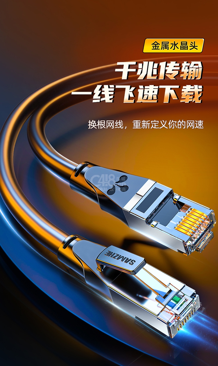 山澤(SAMZHE)六類網(wǎng)線 CAT6類千兆網(wǎng)絡連接線 工程家用電腦寬帶8芯雙絞金屬頭成品跳線 黑3米 GWD6030 *1
