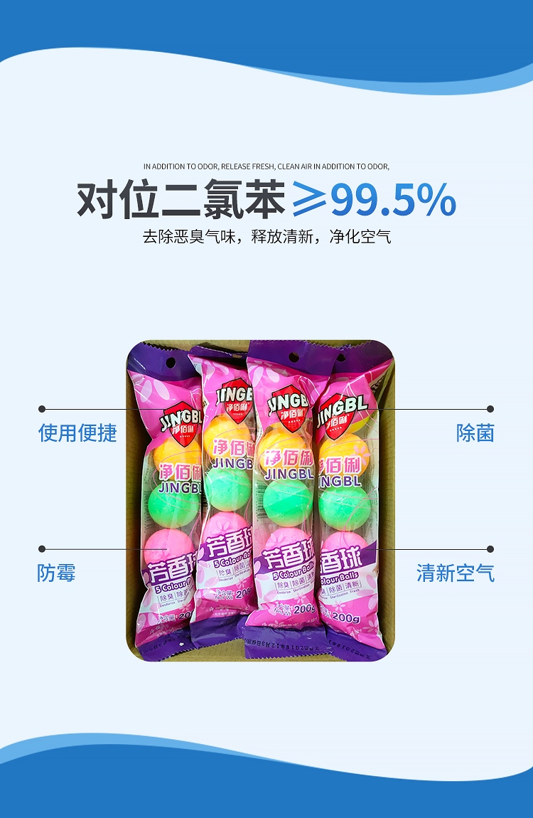 “JINGBL/凈佰俐”200g 芳香球 1包裝(混色五彩球香精球廁所衛(wèi)生間衛(wèi)生球除味凈化5個/包)