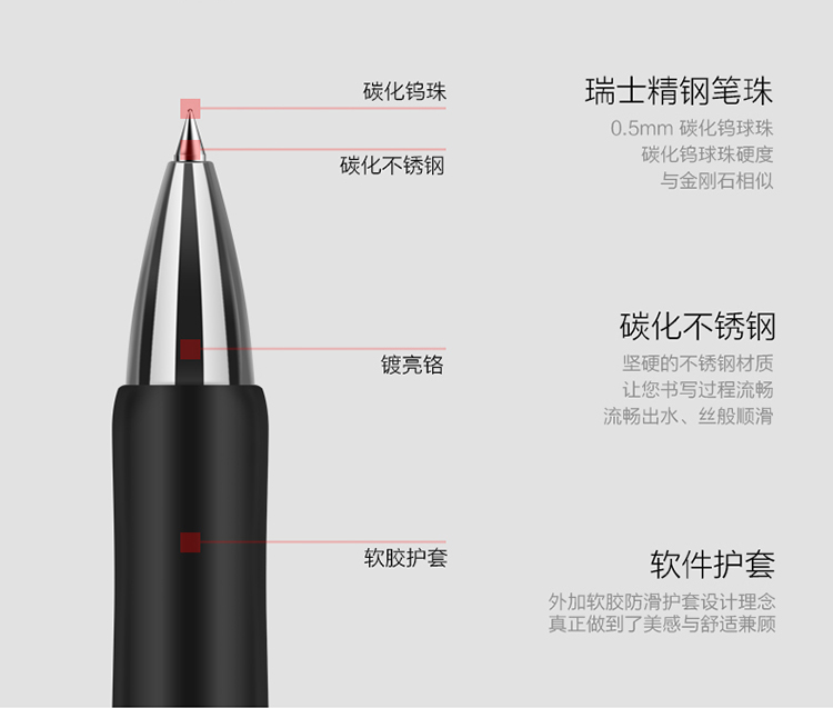 “deli/得力”S01 中性筆 一盒裝(紅色0.5mm彈簧頭經(jīng)典辦公按動(dòng)子彈頭水筆簽字筆軟膠手柄12支)