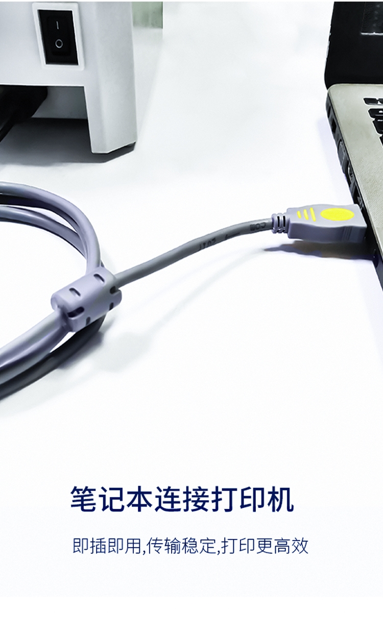 “JH(jinghua)/晶華”U112H USB2.0高速打印線 1根裝(灰色3米電腦AM/BM方接口連接打印機惠普HP佳能愛普生數(shù)據(jù)打印機連接線)