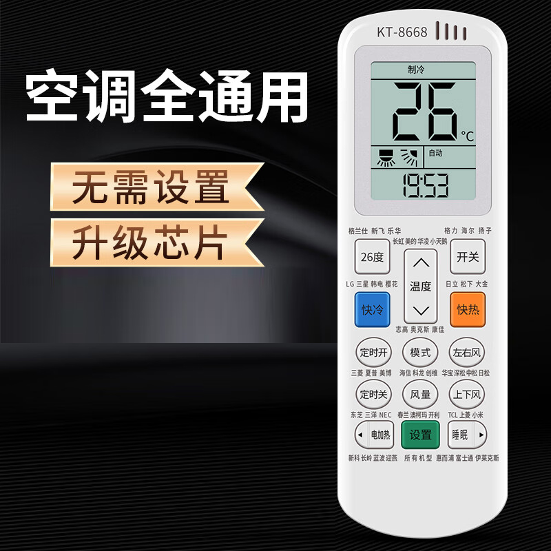 “秦軒”KT-8668 萬能空調(diào)遙控器 1個裝(通用款適用于格力美的海爾奧克斯志高海信長虹新科龍格蘭仕華凌春蘭大金等升級版)