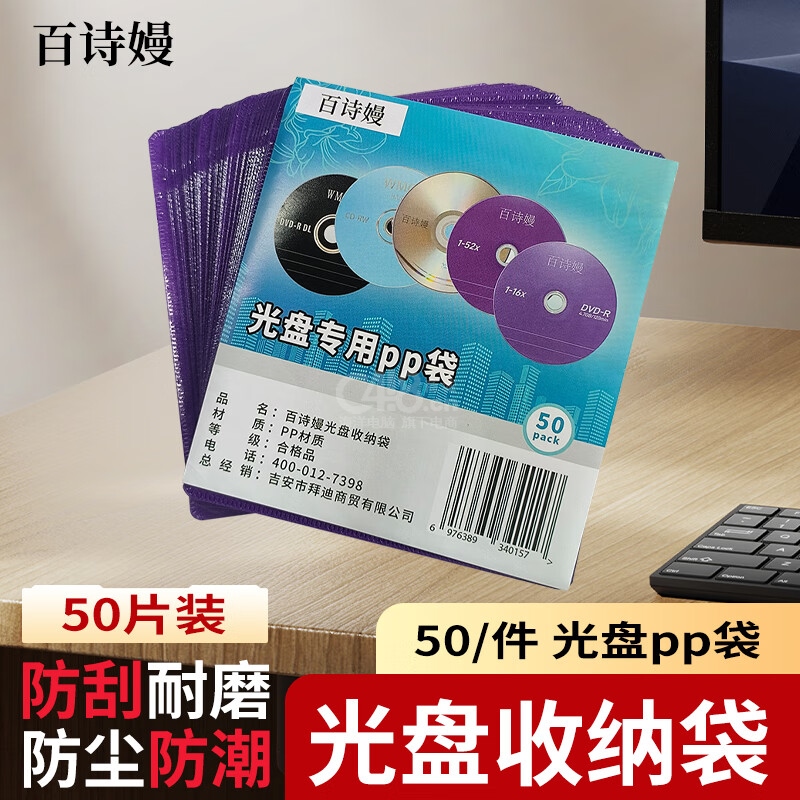 “百詩(shī)嫚”直徑12CM/5寸 光盤(pán)專用PP袋 1包裝(CD/DVD光盤(pán)收納袋雙面裝PP光盤(pán)袋加厚50片/包光盤(pán)袋)