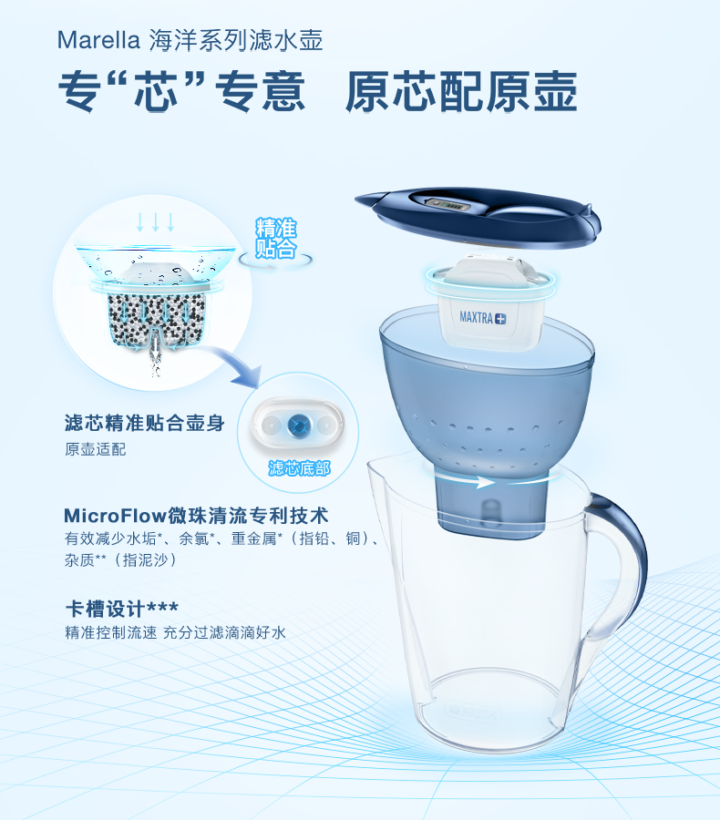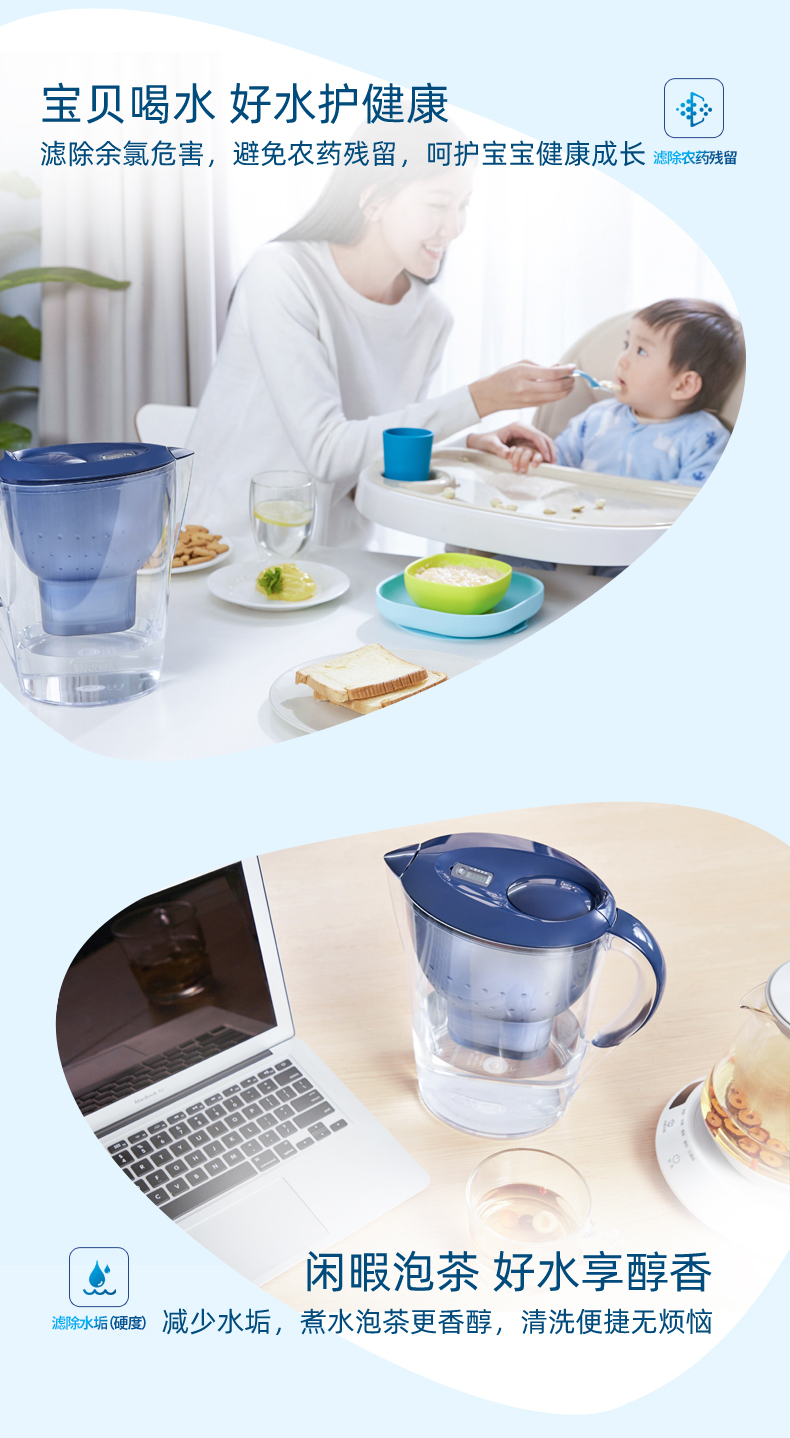 “BRITA/碧然德”MareIla XL+P5 濾水壺 單套裝(藍(lán)色3.5L多效版海洋系列過(guò)濾凈水器凈水壺一壺六芯裝環(huán)保加固包裝)