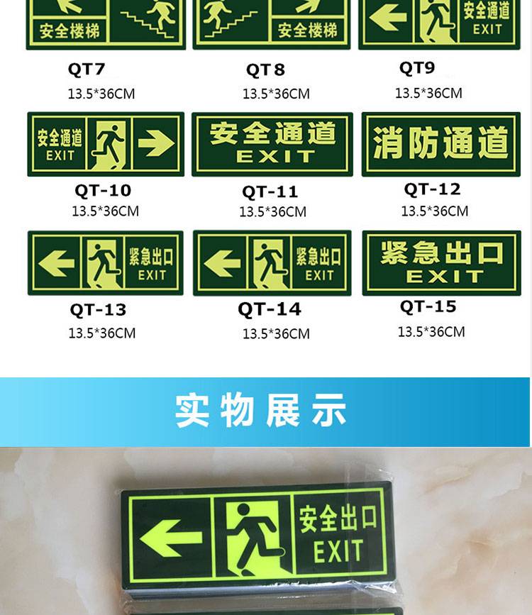 “冰禹”QT10安全通道右 消防安全標(biāo)牌 1套裝(BYyq-121夜光PVC警示墻貼標(biāo)牌安全出口標(biāo)識(shí)牌標(biāo)志牌)
