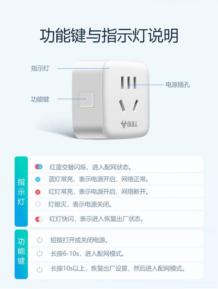 “BULL/公?!盙N-Y2012 插座 1個裝(WIFI智能電源插座公牛智家APP智能生態(tài)產(chǎn)品獨立控制帶定時功能)