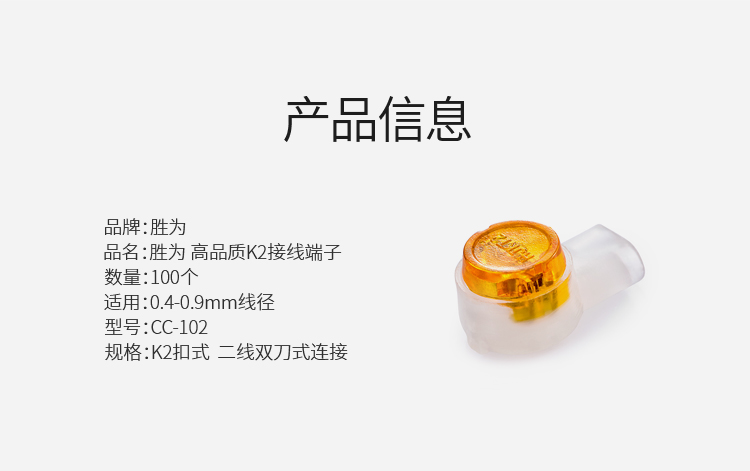 | 名稱 | 勝為(shengwei)CC-102 高品質(zhì)工程專用K2接線子 接線端子 100個/袋 網(wǎng)線電話線接線頭 K2雙刀雙線接線子 |