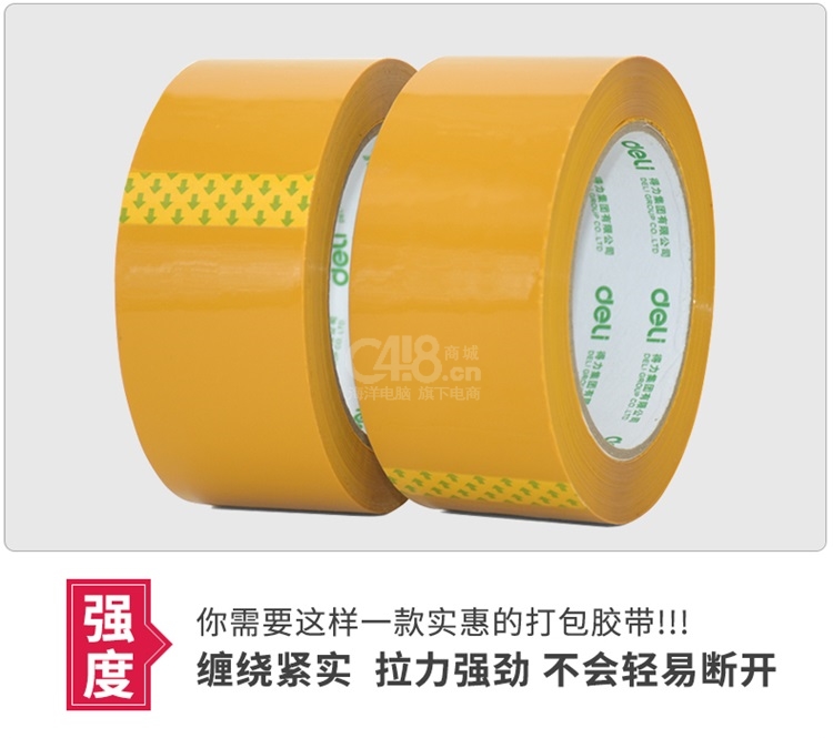 “deli/得力”No.30358 封箱膠帶 1卷裝(米黃色大卷膠帶快遞打包寬膠布60mm*60y 6卷/筒)