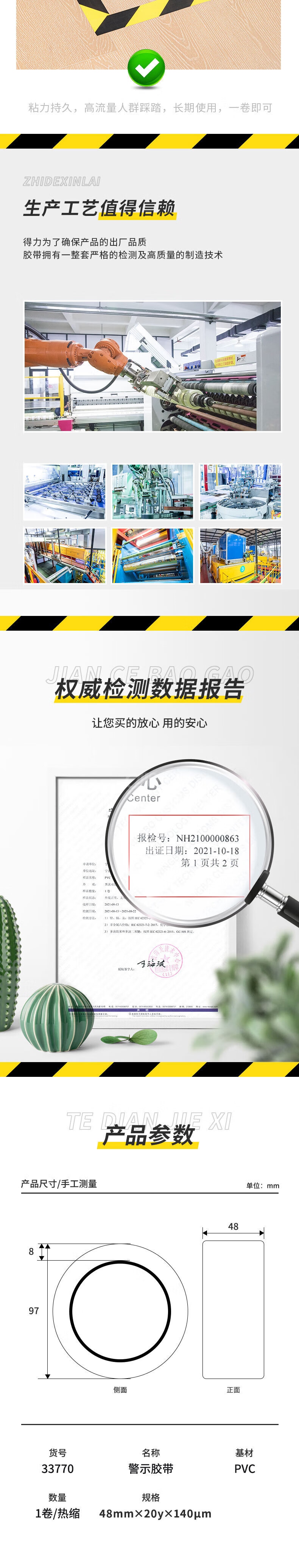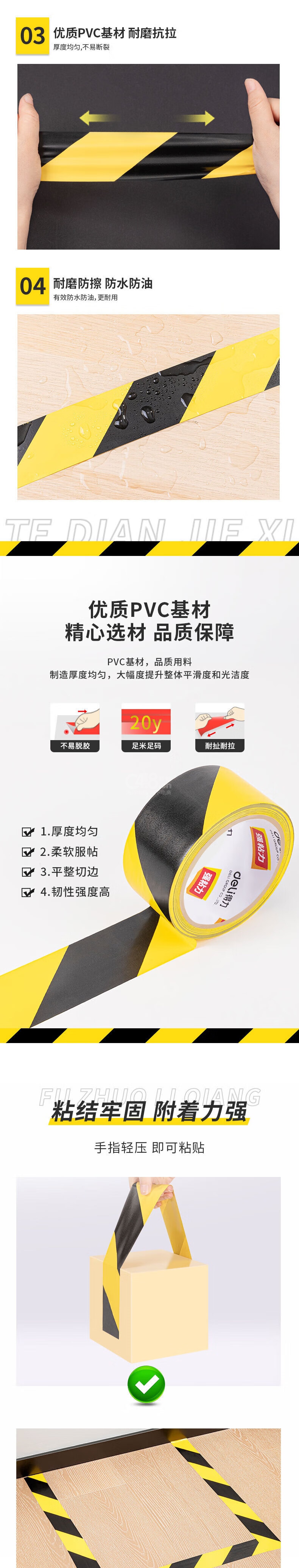“deli/得力”33770 警示膠帶 1卷裝(黃黑安全警示膠帶防臺風(fēng)貼窗固定加厚PVC耐磨防水地標(biāo)線膠帶警戒斑馬線5S定位48mm*20y)