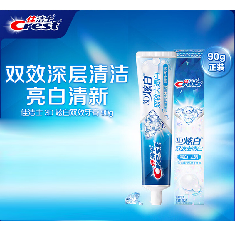 “Crest/佳潔士”3D炫白 90g 牙膏 1支裝(雙效去漬白美白去黃去牙漬防漬含氟90克新老包裝混發(fā))