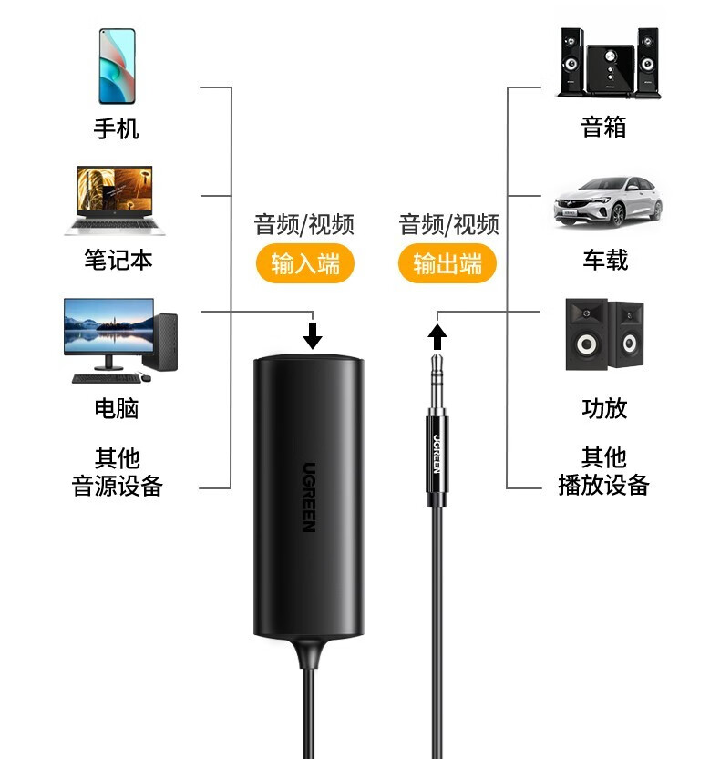 “UGREEN/綠聯(lián)”CM534 90491 音頻隔離器 單個(gè)裝(3.5MM防干擾過濾器濾波器共地干擾隔離器AUX音頻口電流聲抗干擾母音頻共地0.5米)