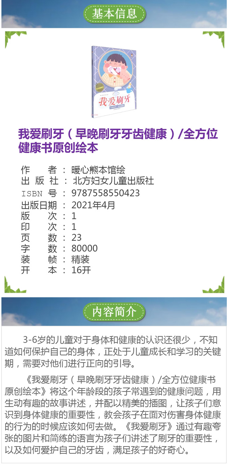 品牌:北方婦女兒童出版社型號:我愛刷牙產(chǎn)地:吉林省長春市