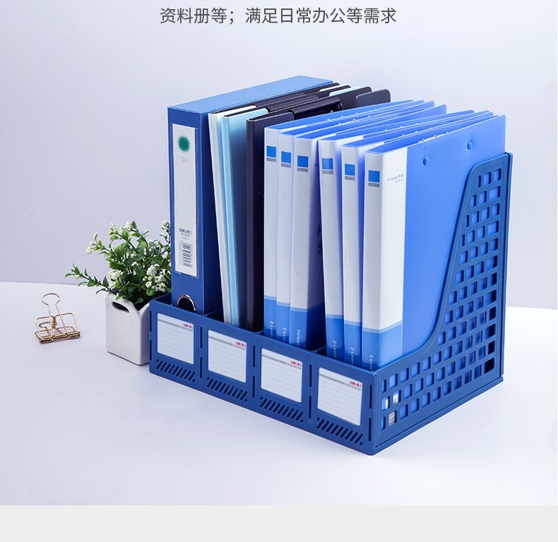 “deli/得力”33777 文件框 1個裝(黑色辦公用品文件框四聯(lián)文件座桌面資料架文件整理置物架塑料收納盒)