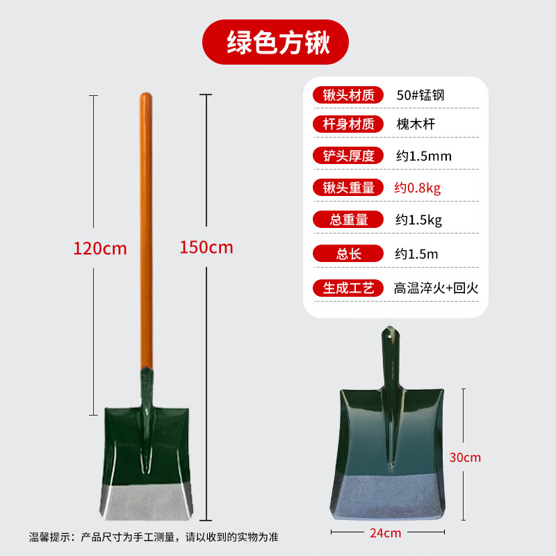 “網(wǎng)問(wèn)五金”X1203 鐵鍬 單把裝(槐木柄方鏟錳鋼鐵锨挖樹(shù)挖土平頭鍬防汛農(nóng)具種植種菜鍬除雪鏟)