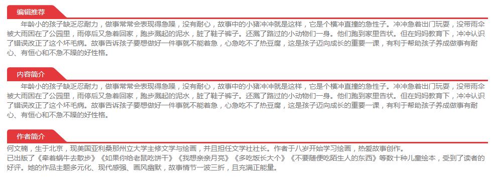 品牌:中國人口出版社型號:愛闖禍的小豬沖沖產(chǎn)地:北京市